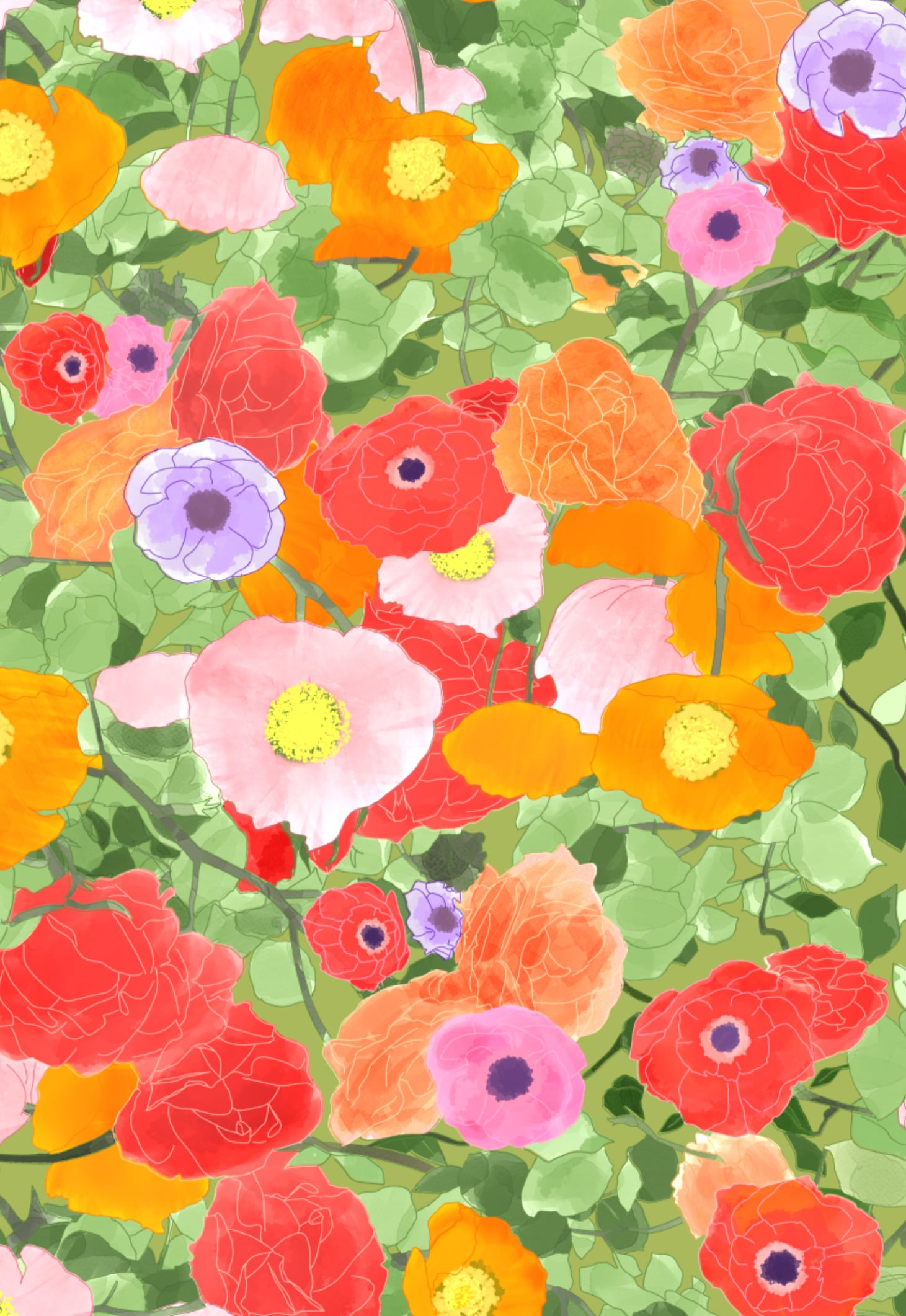 赤い薔薇・アネモネ・ポピー