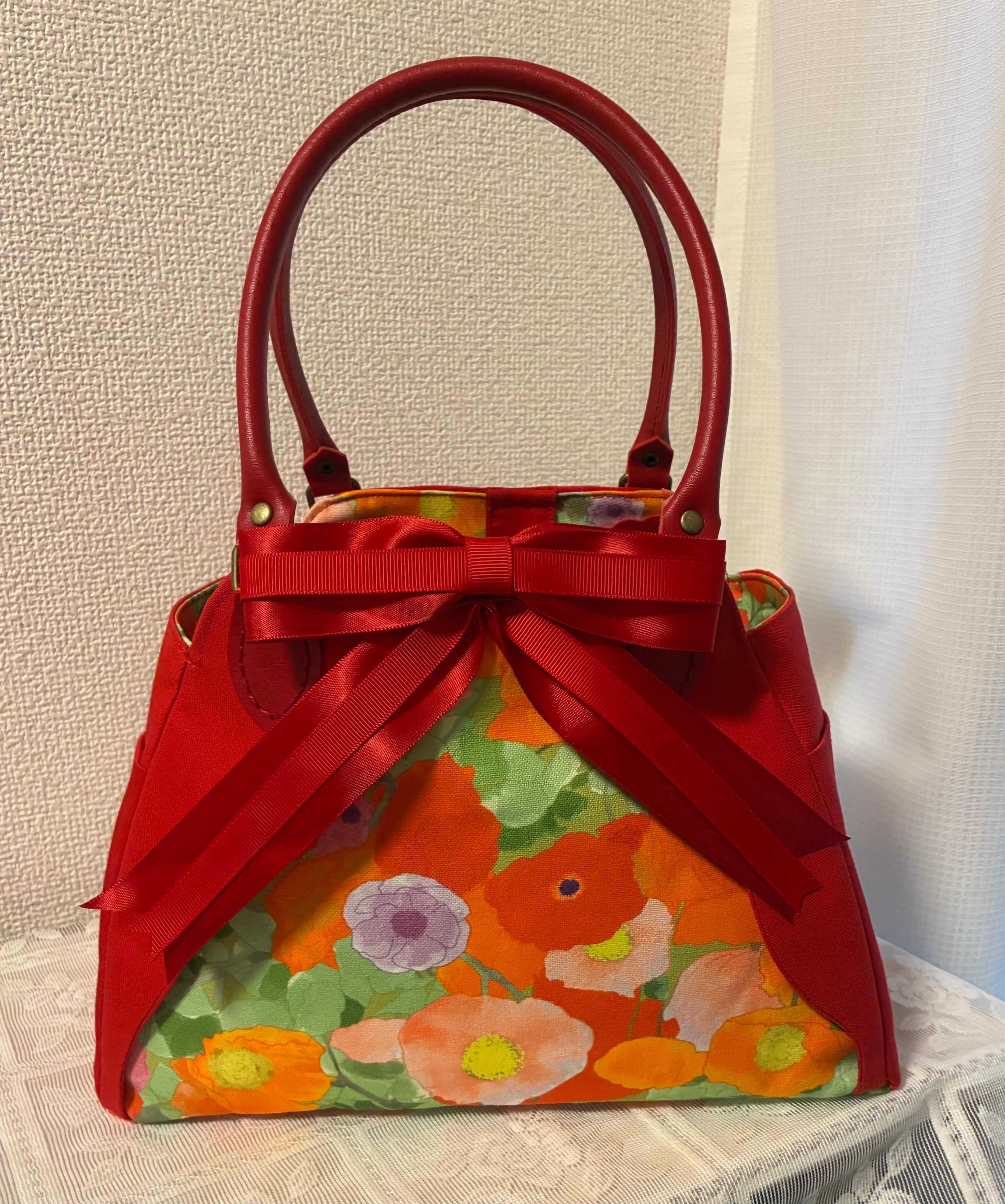 鮮やかで華やかさを感じさせる花束をイメージしたオリジナルハンドバッグです。